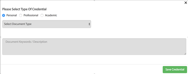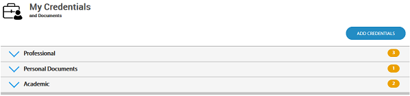 - Now click on ‘Add Credentials’ to add your credentials. You can choose to add your credential in ‘Personal’, ‘Professional’ or ‘Academic’ categories