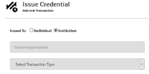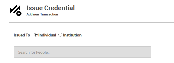 - Individual is preselected. P lease search for and choose the person you want to issue credential to . You can do this by typing name of the person you want to transact with.