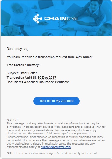 - Once the receiver has performed action on the action you will be notified by eMail.