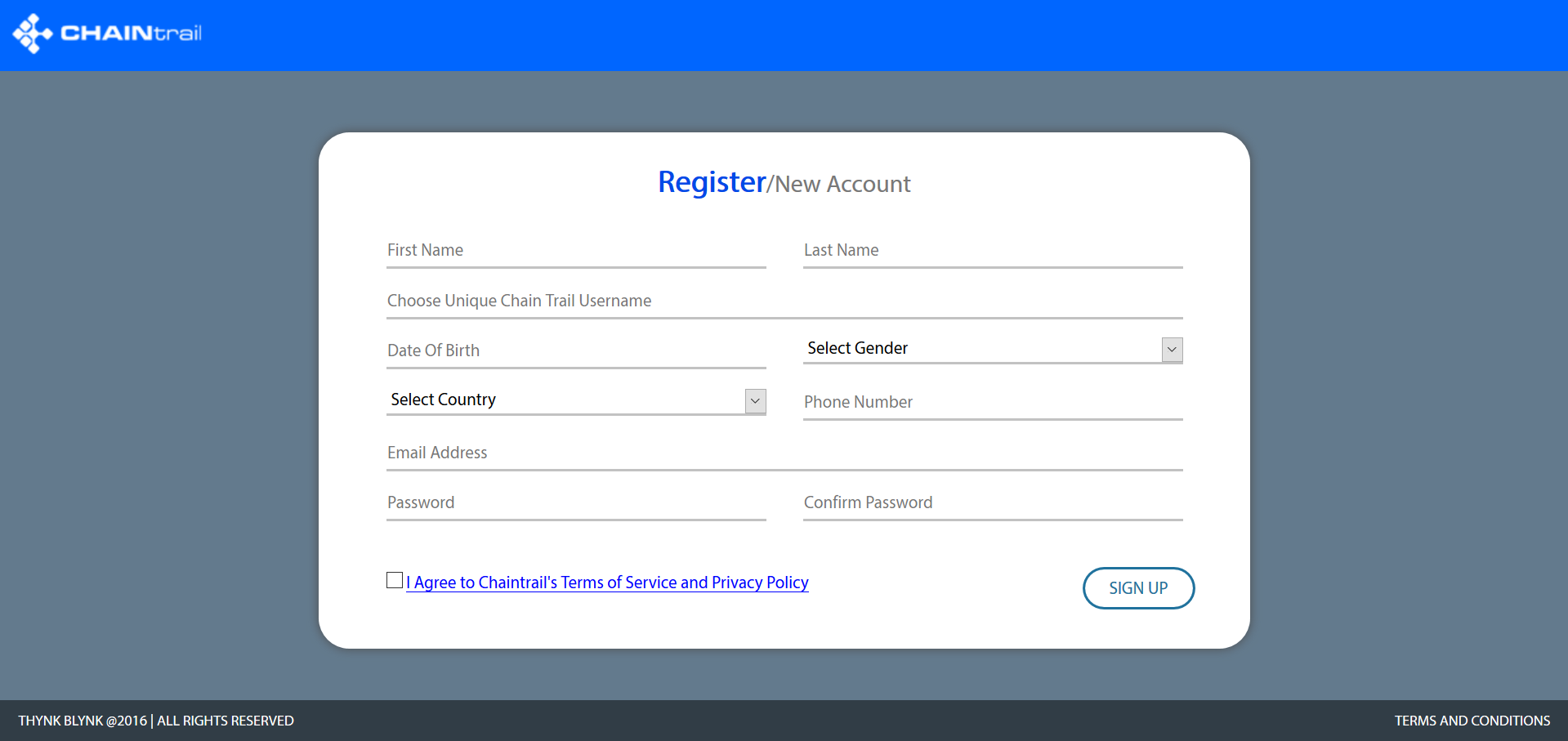 1. Create your personal account by clicking on the link in the eMail you received from ChainTRAIL.Com initiated by your organization’s administrator or go to ChainTRAIL.com>Register>Individual