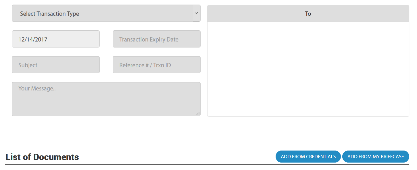 - Add Credential document you want to issue from your Briefcase. Please note you will be able to select only one document in order to issue credential.