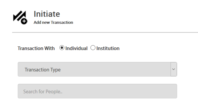 - Once you have decided the action type, please search for and choose the person you want to transact with. You can do this by typing name of the person you want to transact with.